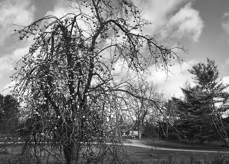 As the project evolved, three visual elements allowed me to consider those questions and became the main forces pulling everything together: the apple orchard, the night, and the generative tension between fire and ice. In addition to these visual elements, my concerns also included the landscape around New Hampshire and Vermont, the implacable nature of poetry, and the desire to create an immersive and interactive poem whose final embodiment depends on community participation.